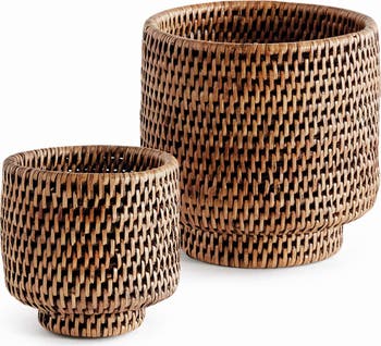BURMA RATTAN CACHEPOTS SMALL, SET OF 2