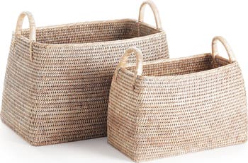 Napa Home & Garden Burma Rattan Narrow Magazine Baskets Set of 2, Main, color, Beige