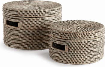 From the signature tight weave to the natural graywash finish, Burmese artistry is truly exceptional. The tight fit of the coordinating tops of this pair shows the artisan's skill, and also keeps the contents secure. Genuine craftsmanship that is handed down from generation to generation.