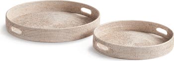 Burma Rattan Round Ottoman Decorative Trays Small Set of 2