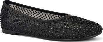 Polished studs bring the perfect touch of modern attitude to this airy mesh flat fashioned with a classic round toe.