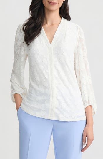 A burnout floral design adds just the right amount of texture to this effortlessly chic woven shirt.