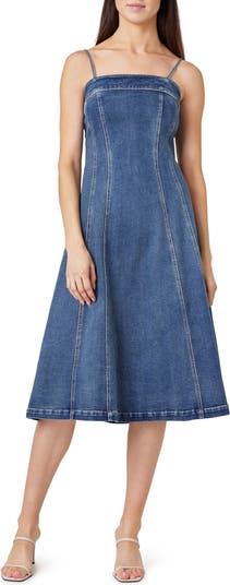 Elevate your casual look with this structured denim dress in an A-line silhouette.