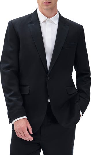Pickstitching traces the casually formal silhouette of a wool-jacket that adds tonal contrast at the lapels.