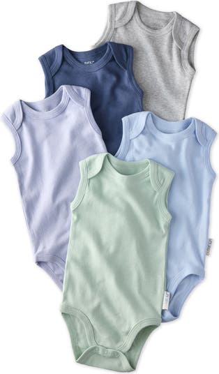 Soft organic cotton will be gentle on baby's skin when they wear these sleeveless bodysuits almost every day of the week.