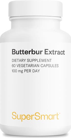 - BUTTERBUR EXTRACT - SuperSmart Butterbur extract has been carefully crafted with natural herbs extract standardized to 15% sesquiterpenes. HIGH POTENCY - Butterbur Extract boasts a rich history of traditional use, explore the natural goodness of Butterbur Extract, now available in convenient vegetarian capsules. NON-GMO, GLUTEN FREE, SOY FREE, VEGAN - Supersmart offers you an outstanding quality and choice of supplements for women and men, difficult to find elsewhere. Recommended Use - Take 2 capsules a day. Store in a cool, dry place, away from light. Contains Butterbur (Petasites Hybridus) Root Extract (Standardized to 15% Sesquiterpene Lactones)