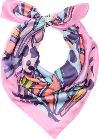 Butterflies take flight in painterly brushstrokes on this fluid silk‑twill square scarf drawn from the kaleidoscopic color wheel of Kurt Geiger.