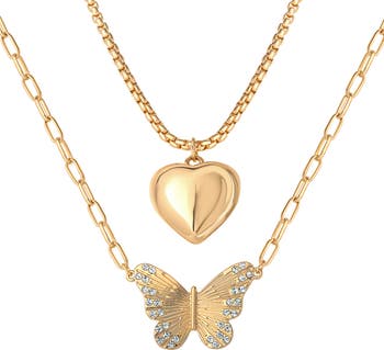 Butterfly and Heart Layered Necklace