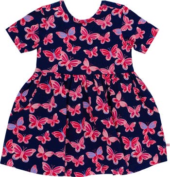 Baby will whirl and twirl in comfort with this charming printed skater dress cut from stretch-enhanced cotton.