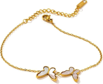 Introducing the exquisite Butterfly Bracelet. Crafted with gold-plating and a stunning butterfly design, this bracelet is effortlessly sophisticated. It's also enhanced with a delicate sea shell inlay, making it the perfect accessory to dress up any look.