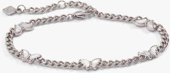Butterflies represent the power of transformation, entering their cocoons as caterpillars and emerging as some of nature's most beautiful creatures. This butterfly curb chain bracelet captures the essence of the butterfly, with five crystal-accented butterflies in-line on an adjustable-length curb chain bracelet. Wear it as a reminder to trust the process. Your wings are on the other side.