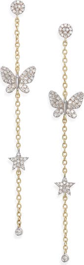 Charming butterflies and stars dusted with pavé diamonds illuminate these delicate 14-karat gold chain earrings.