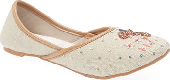 Sequins and beaded embroidery add playful whimsy to a lightweight flat handcrafted for all-day comfort with a padded footbed that molds to your foot.