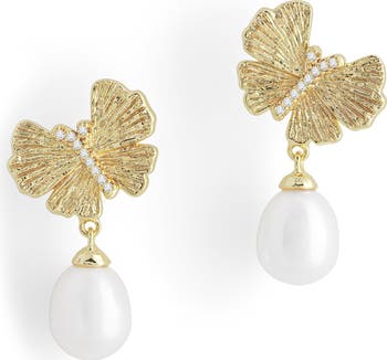 Butterfly & Faux Pearl Drop Earrings