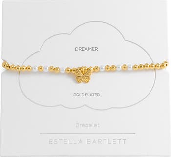 Lustrous faux pearls lend elegant detail to this whimsical butterfly stretch bracelet that dares you to dream.