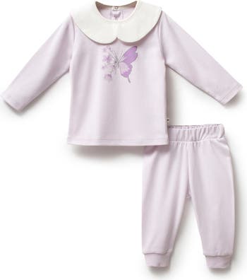 The Butterfly Flower Outfit Set blooms with gentle color tones and charming butterfly and floral accents. This coordinated set pairs a soft, comfy top with matching bottoms, creating a sweet and whimsical look perfect for playdates or special days. Made from lightweight, breathable fabric, it ensures comfort alongside delicate style.