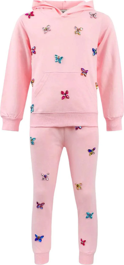 Enchanting Pink Butterfly Gem Set with dazzling butterfly embellishments. Cozy hoodie and stylish jogger pants for a cute, coordinated look. Ideal for casual outings, playdates, and special occasions. Versatile set that can be worn together or mixed and matched with other pieces.