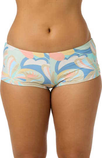 Serve sporty style in these cheeky swim shorts fashioned with a vacay-ready print.