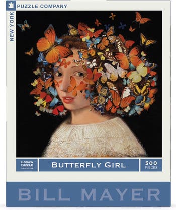 Step into a world of surreal beauty with Butterfly Girl, a 500 piece jigsaw puzzle featuring a mesmerizing illustration by celebrated artist Bill Mayer. This enchanting puzzle depicts a young woman with a cascade of vivid butterflies swirling through her hair and across her face, blending classical portraiture with imaginative fantasy. Ideal for puzzle lovers, art collectors, and fans of whimsical design, Butterfly Girl combines artistic depth with a satisfying level of challenge. Every piece reveals part of a rich and intricate scene that comes alive as you complete it. Let your imagination take flight with Butterfly Girl – a beautiful blend of nature, elegance, and artistic wonder.