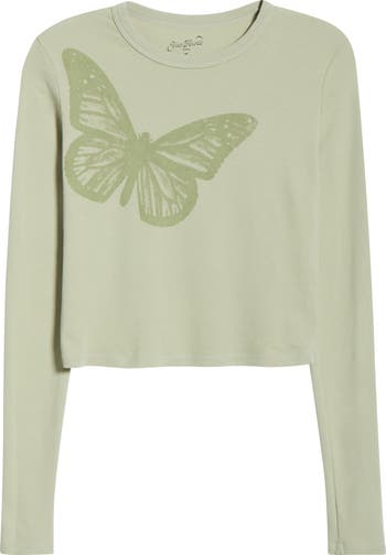 A tonal butterfly touches down on this cropped long-sleeve T-shirt made from cotton jersey.