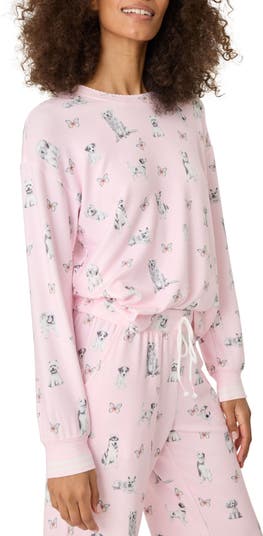 A dreamy pattern enhances the laid-back allure of this long-sleeve pajama top cut in a relaxed fit.