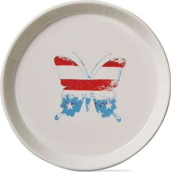 Entertain with style! Impress your guests with this wonderful butterfly appetizer plate. Featuring butterfly decal design, this plate is perfect to serve small appetizers and hors d'oeuvres for the summer holidays or showcasing your patriotic spirit. Beautifully versatile and functional. dishwasher safe, may get hot in microwave