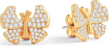 The brand's ginkgo leaf motif metamorphoses into graceful butterfly earrings, intricately crafted from 18-karat-gold-plated brass and set with sparkling pavé crystals.