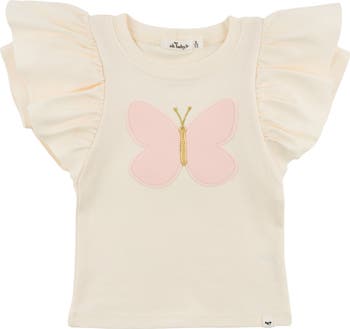 This oh baby! Butterfly Short Sleeve Tee is ideal for your little girl! The butterfly flutter sleeves bring a playful twist, while the pink terry butterfly applique adds a lovely touch of spring. Made from soft cotton, this cream tee will keep your little one feeling fashionable all season long. Available in infant, toddler and girls sizes. Designed in Minnesota.