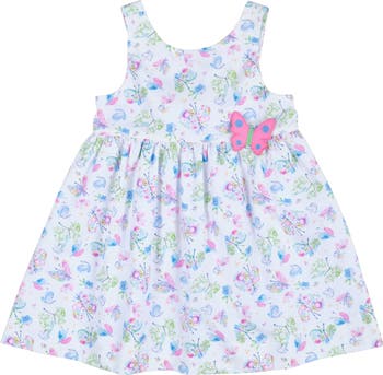 This girls' butterfly print dress is crafted from crisp cotton poplin with a charming butterfly appliqué. Details include back straps tied in a bow and a playful, above-knee length silhouette ideal for warm-weather days.