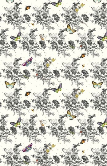Bring rich hues to your walls with this easy-to-install wallpaper featuring florals, insects and pops of color.