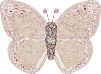 Add instant charm and coziness to any space with this butterfly-shaped rug that's washable to keep it looking fresh as it is loved for time to come. To create a more realistic look, it's handcrafted with eight different hues of pink and peach, enhancing the texture and dimension that'll delight your little one.