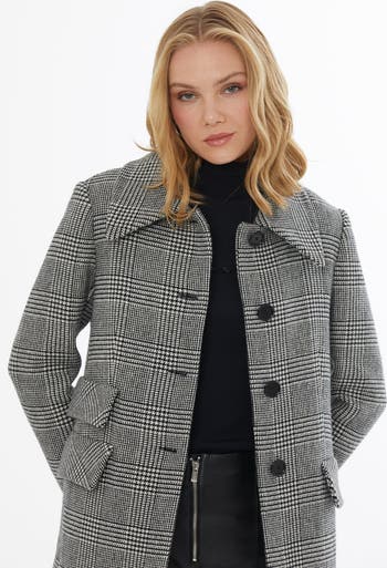 Crafted for the Fall-Winter season, this short-length design features a shirt collar and long sleeves with a buttoned closure. The piece includes pockets and has a standard-size pattern with a lined interior. Made from 70% wool and 30% polyamide, it provides warmth and structure. The model wears size 36 and is 5'9" tall, with measurements of 32.7" bust, 25.2" waist, and 36.6" hips.