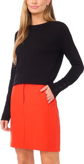 This soft and simple sweater is knit with a classic crewneck and ribbed trim.
