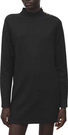 Keep it cozy for dress day in a sweater-knit option offered in a leg-baring length.