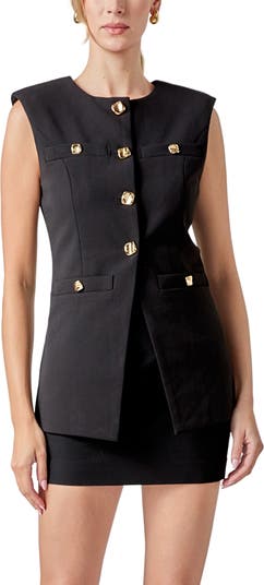 Goldtone buttons add a touch of modern glamour to this structured longline vest.