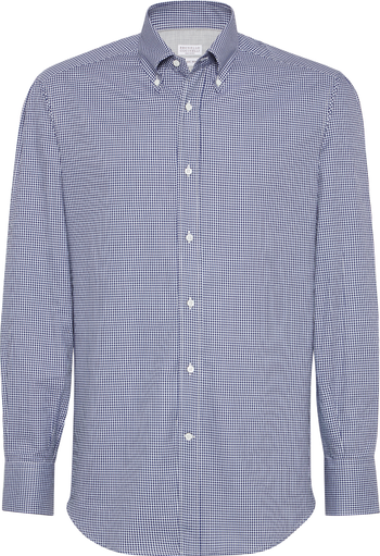 The smooth, compact surface of the pure cotton fabric is brought to life with a classic and versatile microcheck pattern that enhances the season's colors.