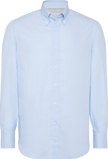 The smooth, compact surface of the pure cotton fabric is brought to life with a classic and versatile microcheck pattern that enhances the season's colors.