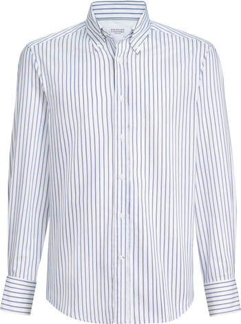 - Placket closure with mother of pearl buttonsButton-down collarCuffs have two mother of pearl buttonsSlim fit