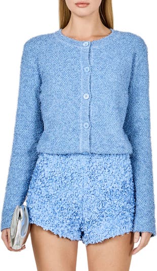 Fuzzy yarn adds to the cozy-chic style of this button-front cardigan that's sure to be an everyday fave.