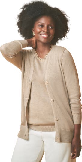 - Easy-care and endlessly soft, this cashmere cardigan elevates every outfit with a touch of elegance. Pair it with the matching Cashmere Shell for a look that feels put-together every time. Straight silhouetteY-necklineLong set-in sleeves with ribbed cuffsButton-front placket28&rdquo lengthPolyester/acrylic/nylonMachine washableImported