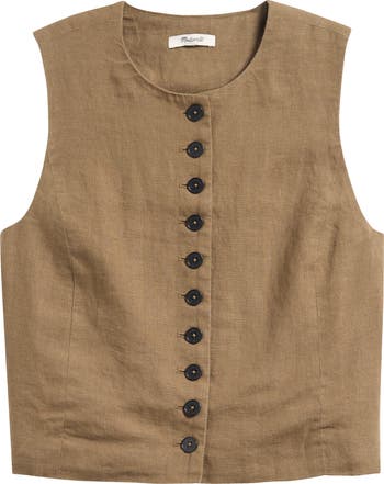 Crafted of pure linen, this shell top features stacked buttons down the front. Minimal and polished, wear it to the office or to a post-work dinner date.