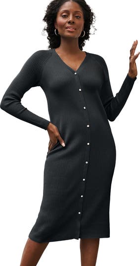 • Introducing your new go-to everywhere and everything dress. This versatile piece combines a casual yet classy design with a slightly fitted silhouette that flatters your figure. Pair it with classic sneakers for a relaxed weekend look or elevate it with boots and a leather jacket for a more polished outfit. There's no wrong way to wear it. Slightly fitted silhouetteV-neckDecorative non-functional gold buttons down front45&rdquo lengthCotton/ acrylicMachine washableImported