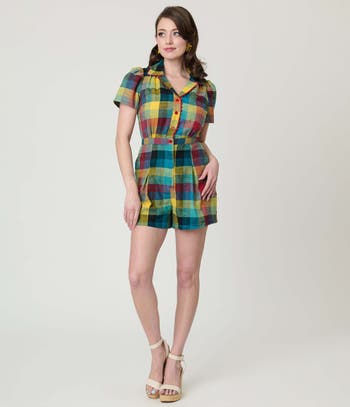This adorable romper features a partial button up front that leads to a classic collar and is framed by short sleeves. Can’t forget about the side pockets for your convenience!
