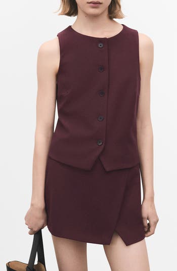 MANGO Button Front Suit Vest, Alternate, color, Maroon