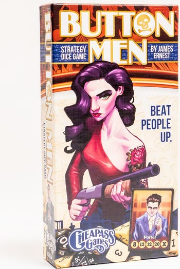 Welcome to Fight City, a city full of intrigue, organized crime, and criminals who like to beat people up. Choose a fighter, roll the dice listed on the card, and capture your opponent’s dice. Your score is determined by the size of the dice you capture and keep. The player with the most points wins the fight! With endless variations of character recipes, unusual die types, and some simple new ‘campaign’ rules, Button Men is a game you can enjoy again and again. The Starter Box includes 48 characters, 30 dice and complete game rules. Including multiplayer and campaign games.