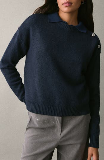 MANGO TEEN Button Shoulder Crewneck Sweater, Alternate, color, Navy