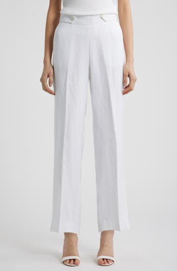 Button Tab Pull-On Linen Blend Wide Leg Pants
