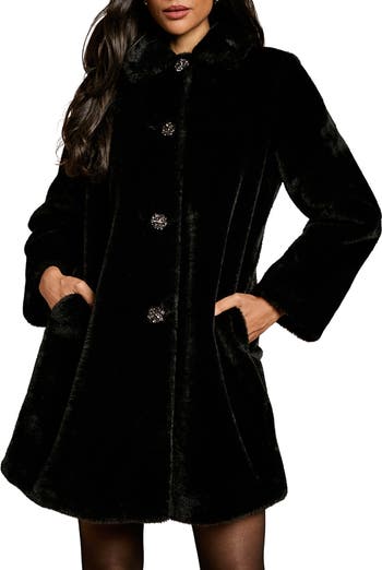 Luxurious fur coat featuring striking diamante buttons for a touch of glamour. Elegant collared neckline creates a sophisticated silhouette. Practical side pockets perfect for keeping essentials close at hand. Regular fit design ensures comfortable wear over occasion dresses. Button-through front closure allows for versatile styling options. Make a statement at your next special occasion with this sumptuous fur coat from coast.