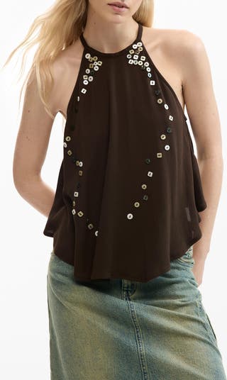 A flowy silhouette adds movement to this crinkled top detailed with a mix of buttons.