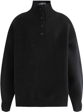 This sweater blends cozy texture with tailored detail, featuring a high ribbed collar and a five-button placket for adjustable warmth and style. Its relaxed fit and structured finish make it a versatile pick for layering through cooler months. Ribbed cuffs and hem offer a snug, shape-retaining silhouette. Button-up neckline adds styling flexibility—from casual open to fully buttoned warmth.